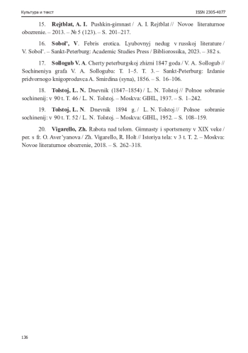10. Рейтблат, А. И. Пушкин-гимнаст / А. И. Рейтблат // Новое литературное обозрение. - 2013. - № 5 (123). - С. 201-217. EDN: RPULYR