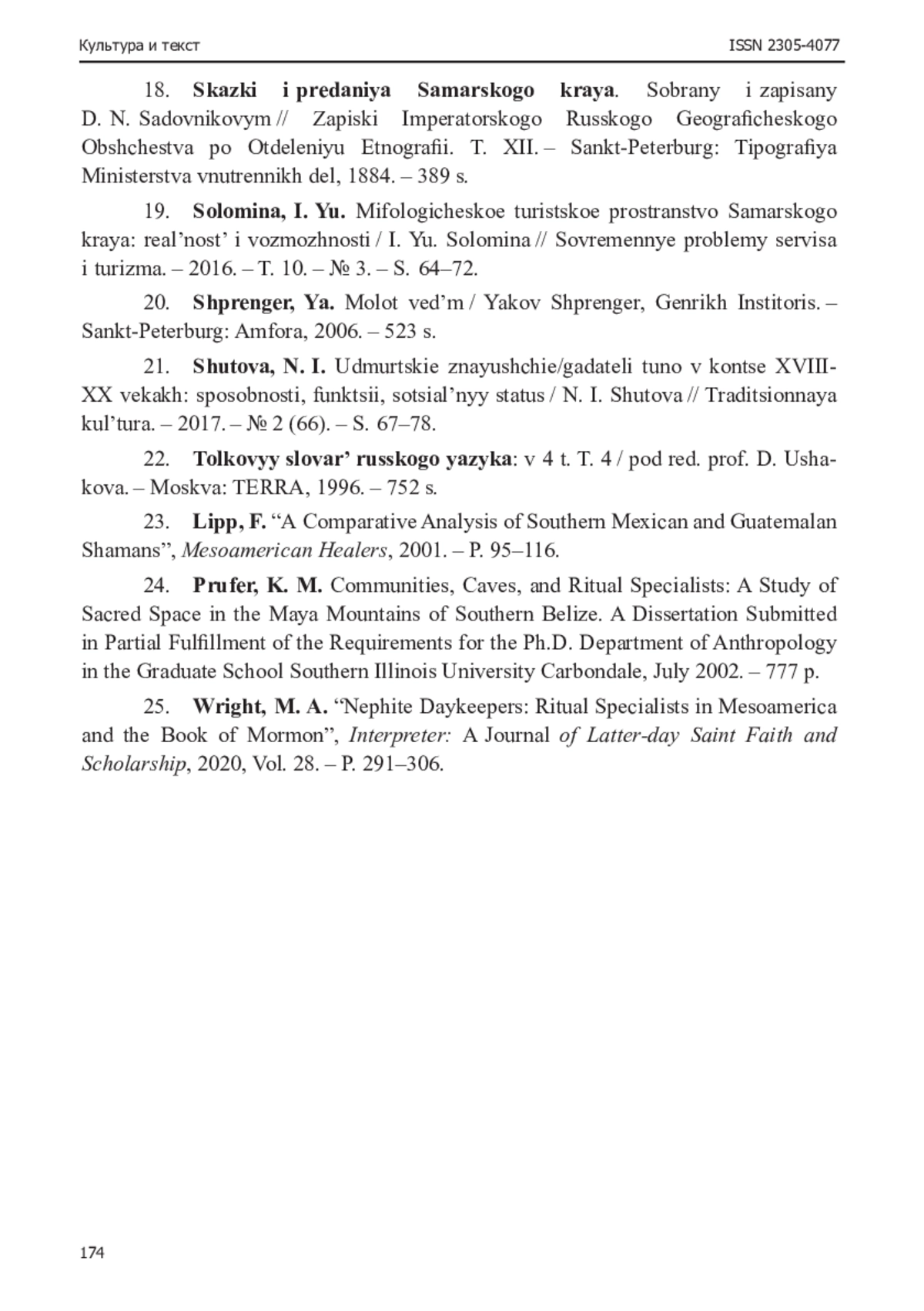 22. Шутова, Н. И. Удмуртские знающие/гадатели туно в конце XVIII-XX веках: способности, функции, социальный статус / Н. И. Шутова // Традиционная культура. - 2017. - № 2 (66). - С. 67-78. EDN: ZBLSYF