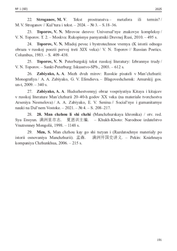 25. Цуй, Л. Харбинский миф в поэзии русской дальневосточной эмиграции 1920-1940-х гг. / Л. Цуй // Культура и текст. - 2018. - № 4. - С. 85-98. EDN: VNOXLW