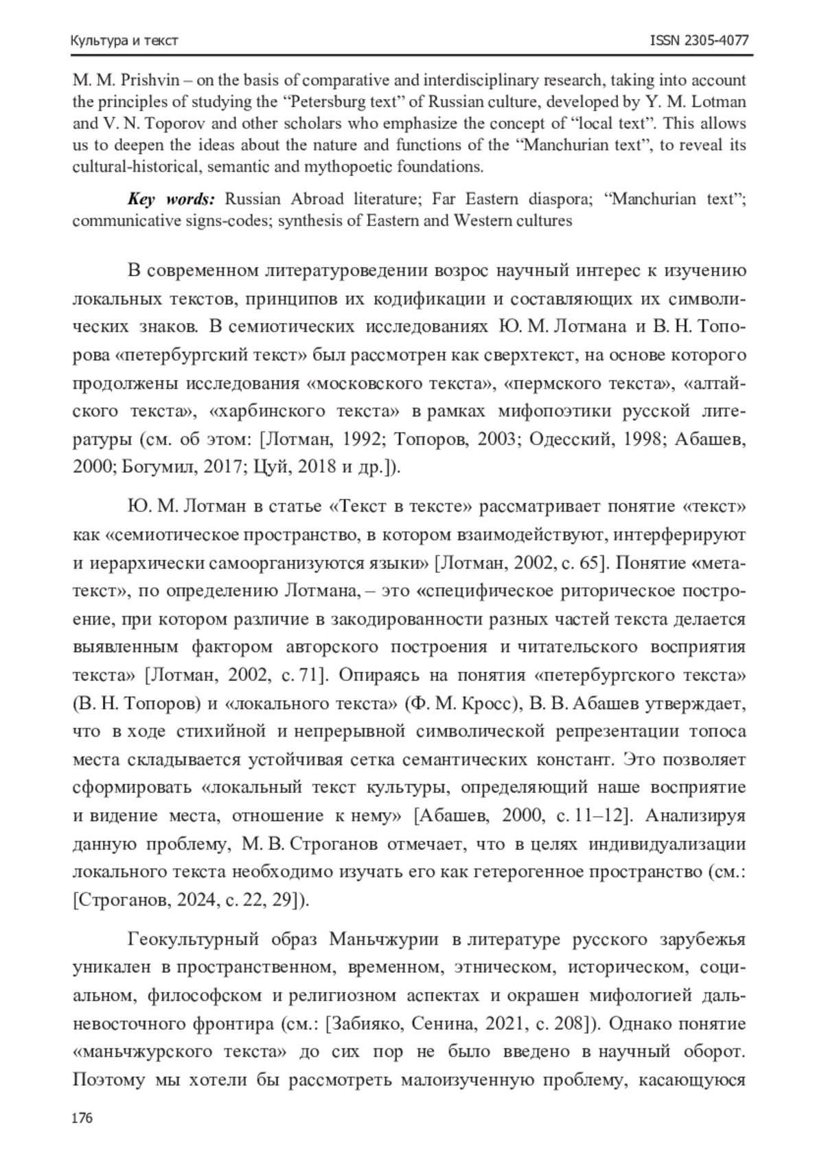 20. Строганов, М. В. Текст пространства - метафора или термин? / М. В. Строганов // Культура и текст. - 2024. - № 3. - С.18-36. EDN: JSAZEB