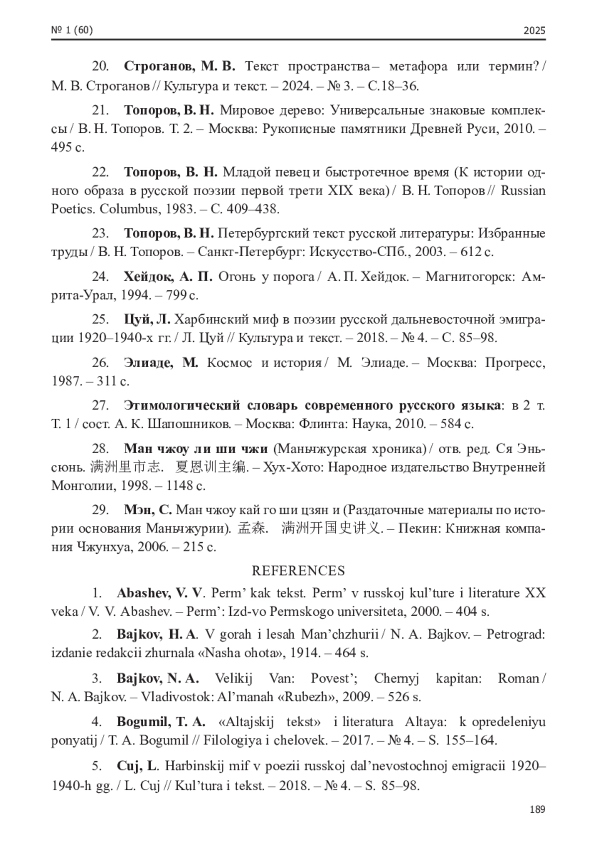 1. Абашев, В. В. Пермь как текст. Пермь в русской культуре и литературе XX века / В. В. Абашев. - Пермь: Изд-во Пермского университета, 2000. - 404 с. EDN: QIRNEL