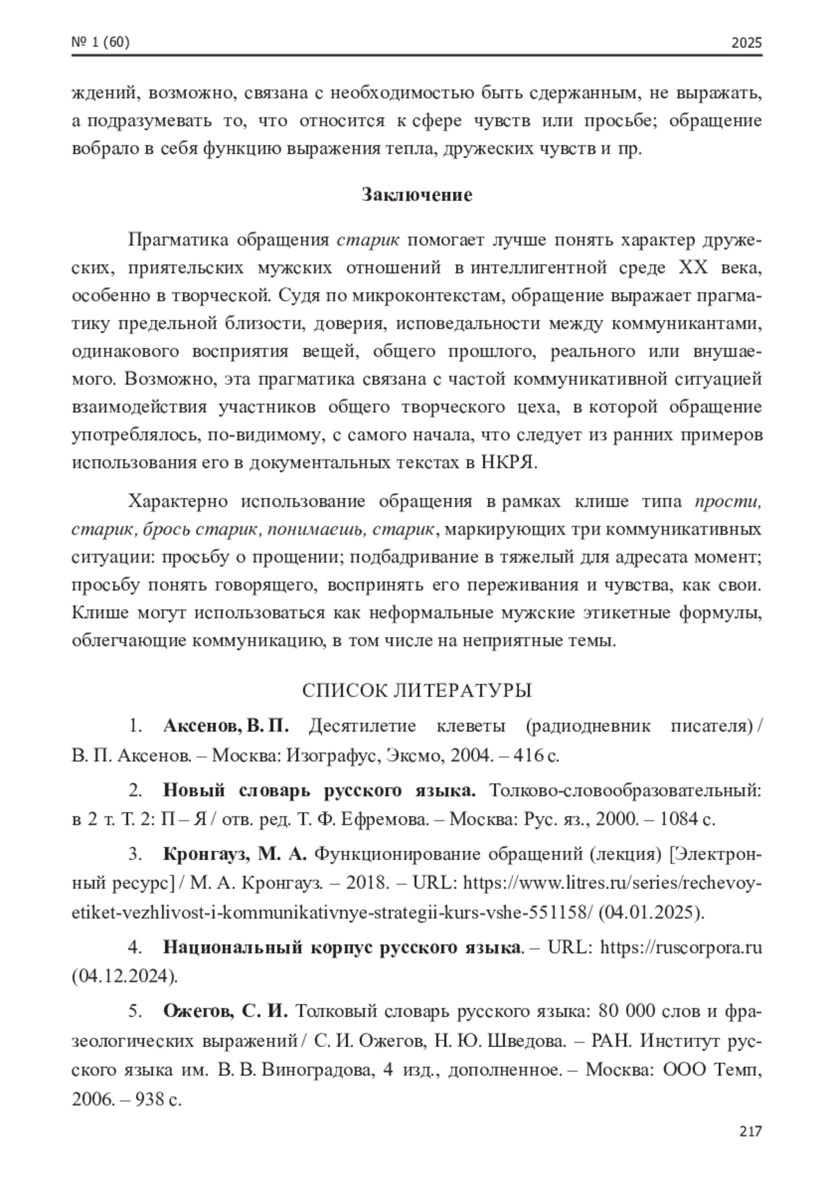 6. Фуфаева, И. В. История появления в русском языке дружеских обращений старина и старик / И. В. Фуфаева // Слово.ру: балтийский акцент. - 2020. - Т. 11. - № 4. - С. 108-117. EDN: ECGFUI