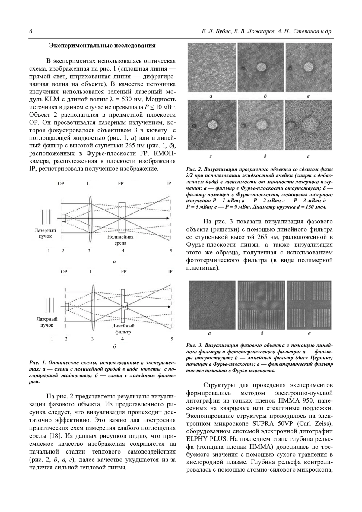 E. L. Bubis, V. V. Lozhkarev, A. N. Stepanov, A. I. Smirnov, I. V. Kuzmin, O. A. Malshakova, S. A. Gusev, and E. V. Skorokhodov Processes of visualization and image inversion by the phase-contrast method with linear and nonlinear filters 5