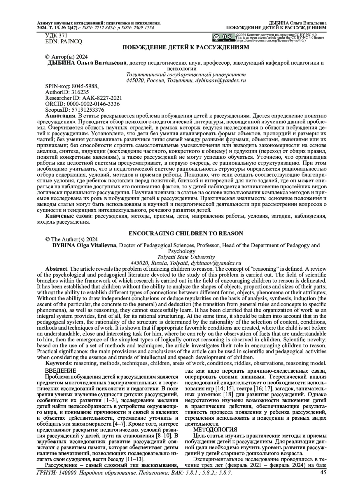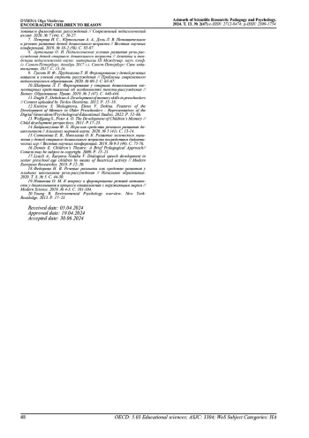 12. Kseniya S. Shalaginova, Elena V. Dekina. Features of the Development of Memory in Older Preschoolers - Representatives of the Digital Generation//Psychological-Educational Studies. 2022. P. 52-66.