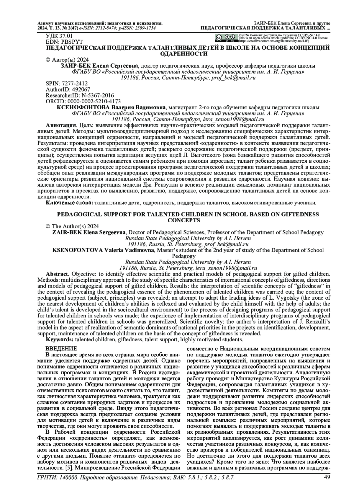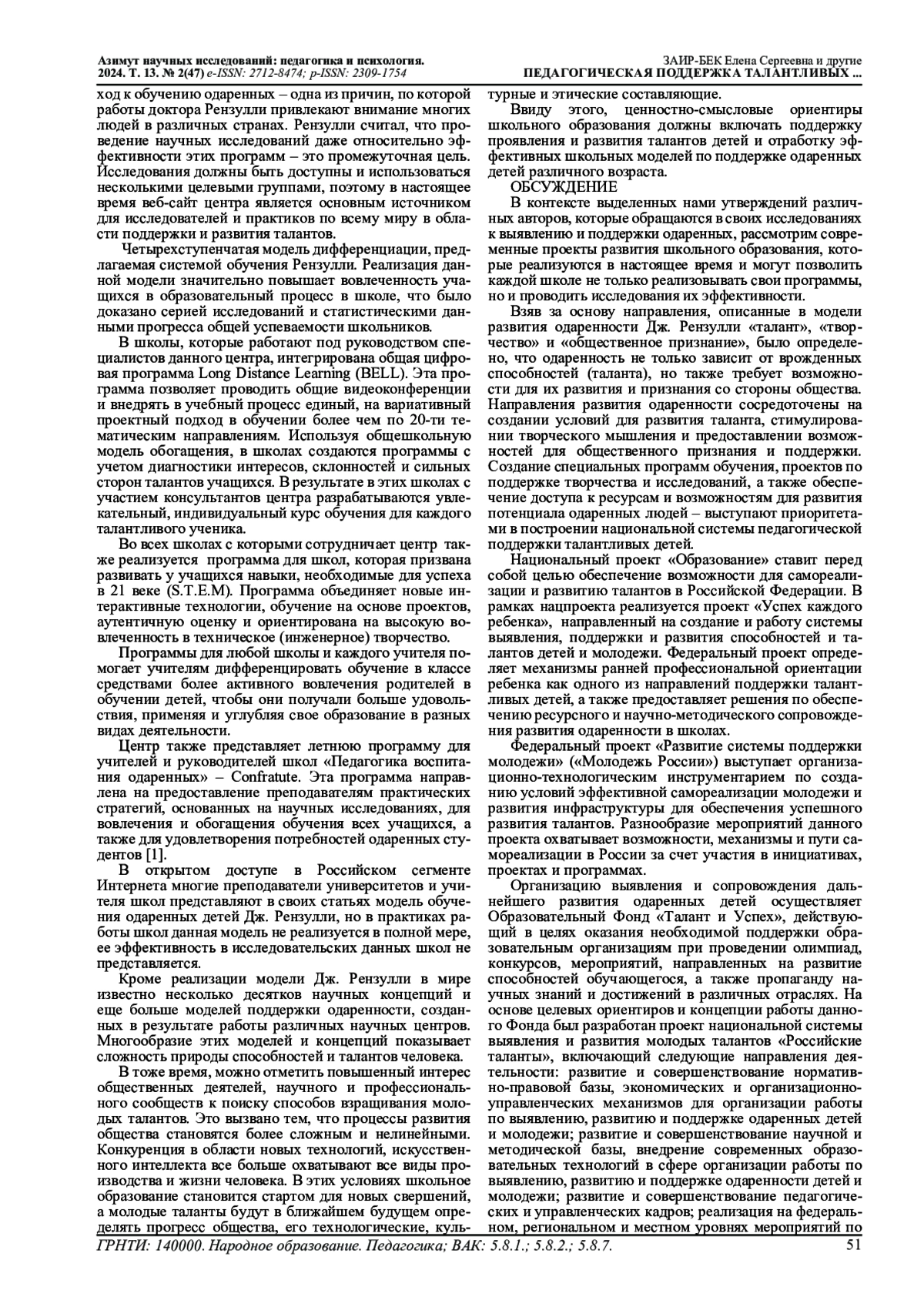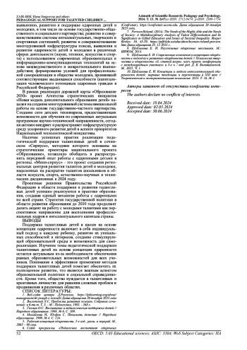 10. Щебланова Е. И. Концепции и модели интеллектуальной одаренности детей: мировые тенденции и перспективы в XXI веке // Теоретическая и экспериментальная психология. 2023. Т. 16. № 2. EDN: CNLILP