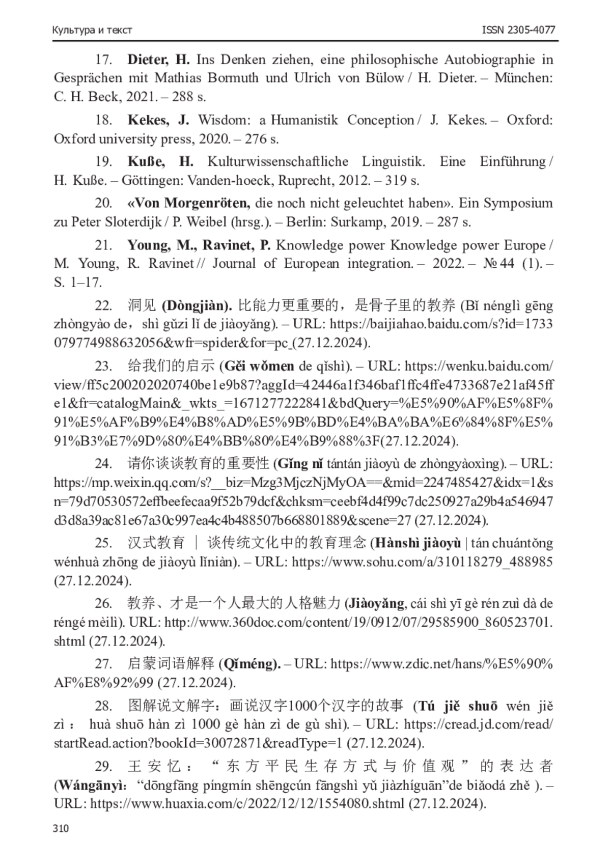 25. 汉式教育 | 谈传统文化中的教育理念 (Hànshì jiàoyù | tán chuántǒng wénhuà zhōng de jiàoyù lǐniàn). - URL: https://www.sohu.com/a/310118279_488985 (27.12.2024).