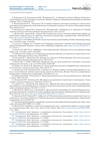 20. Байходжаева Ж.И., Естемесова А.С. Мелкозернистый бетон для 3Д (аддитивной) печати. Endless light in science. 2024;2:416-420.