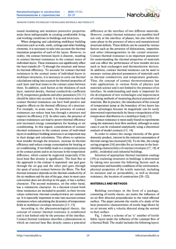Волокнистые материалы и полотна технического назначения находят широкое применение в строительстве, промышленности и других отраслях экономики. Они могут быть изготовлены из различных материалов, таких как стекловолокно, базальтовое волокно, керамические волокна, минеральная вата и другие. Эти материалы, как правило, состоят из волокон микро и наноразмерного ряда, обладают высокой теплоизоляционной способностью, что позволяет использовать их для эффективной тепловой изоляции фасадов и других элементов зданий. В многослойных строительных конструкциях волокнистые материалы и полотна технического назначения [1–2] выполняют не только функцию теплоизоляции, но и защиты от влаги [3] и шума. Они могут быть применены как в качестве утеплителя для наружных стен и крыш, так и для внутренних перегородок и потолков. Кроме того, эти материалы могут быть использованы для создания систем вентилируемых фасадов, что позволяет улучшить теплозащитные свойства здания [4–5] и снизить энергопотребление на обогрев и кондиционирование воздуха. Волокнистые материалы и полотна технического назначения также широко используются в промышленности для теплоизоляции и звукоизоляции трубопроводов, аппаратов и оборудования. Они могут быть изготовлены с различной структурой и плотностью, что позволяет выбрать наиболее подходящий материал для конкретного применения. Таким образом, волокнистые материалы и полотна технического назначения являются важными элементами в строительстве и промышленности. Их высокие теплоизоляционные, звукоизоляционные и влагозащитные свойства делают их незаменимыми в создании комфортных условий жизни и работы в зданиях и сооружениях.