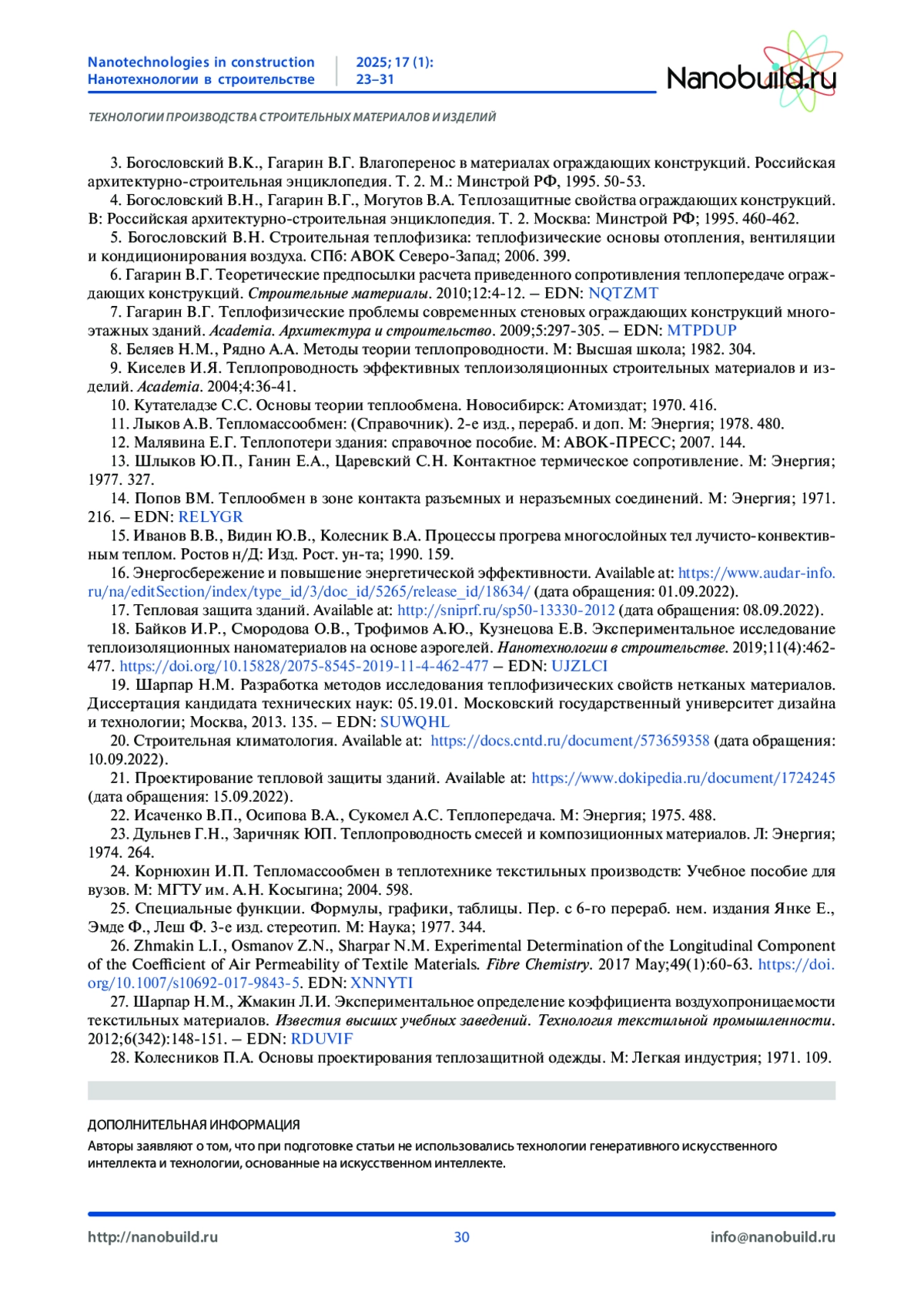 1. Ананьев А.И., Хоров О.А, Евсеев Л.Д. и др. Теплотехнические показатели строительных материалов и конструкций. Строительный эксперт. 2005;16(203):17-23.