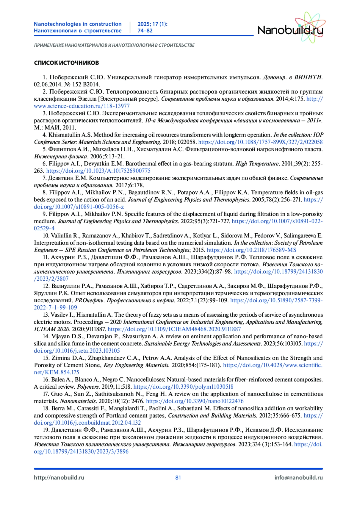 15. Zimina D.A., Zhapkhandaev C.A., Petrov A.A. Analysis of the Effect of Nanosilicates on the Strength and Porosity of Cement Stone, Key Engineering Materials. 2020;854:(175-181). DOI: 10.4028/www.scientific.net/KEM.854.175