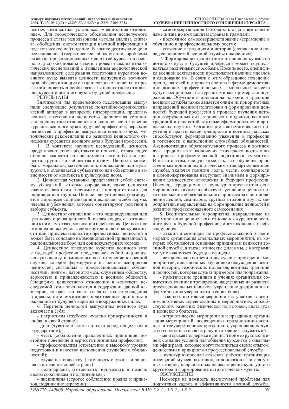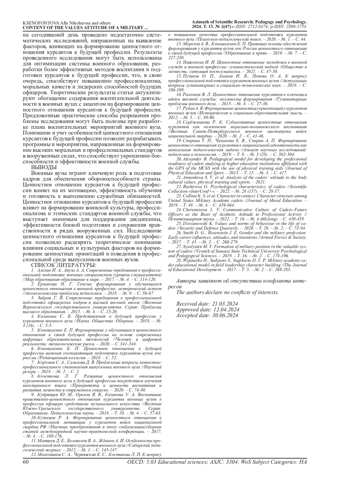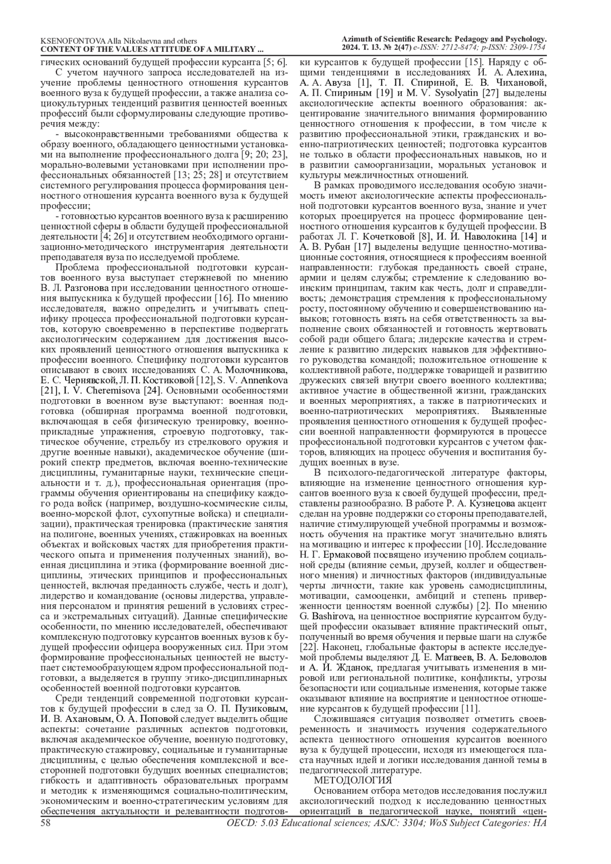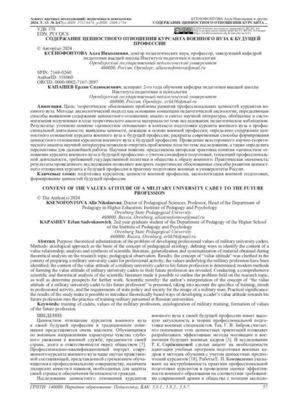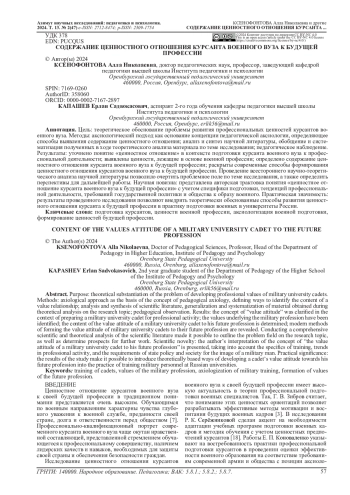 27. Sysolyatin M. V. Formation of military position in the valuable system of cadets //Vestnik of Samara State Technical University Psychological and Pedagogical Sciences. - 2019. - Т. 16. - №. 2. - С. 178-196. EDN: WNEFFK