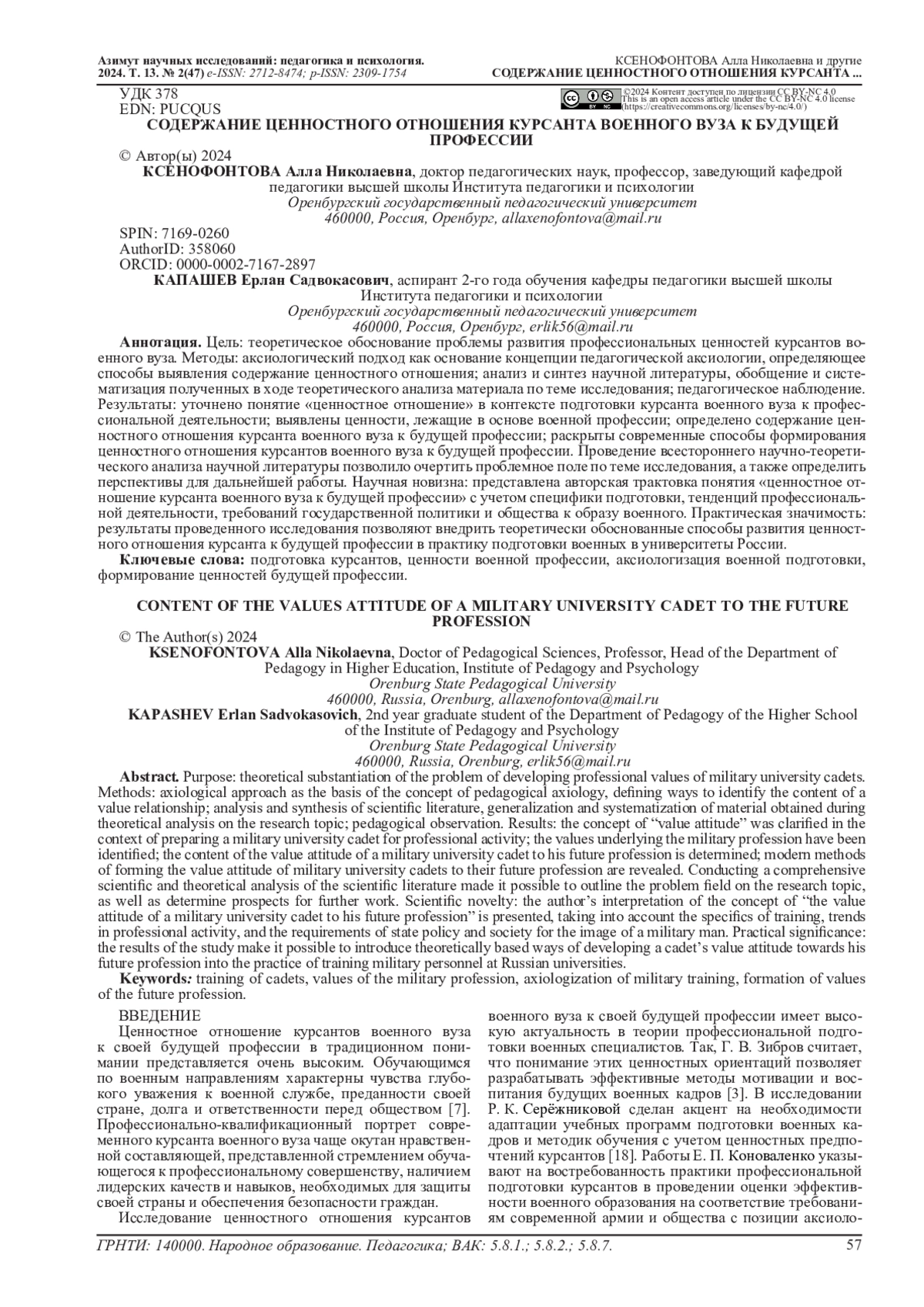 24. Cheremisova I. V.Communicative Culture of Cadets-Future Officers as the Basis of Aesthetic Attitude to Professional Activity //Пенитенциарная наука. - 2022. - Т. 16. - №. 4 (60)(eng). - С. 450-458. EDN: YGKNJG