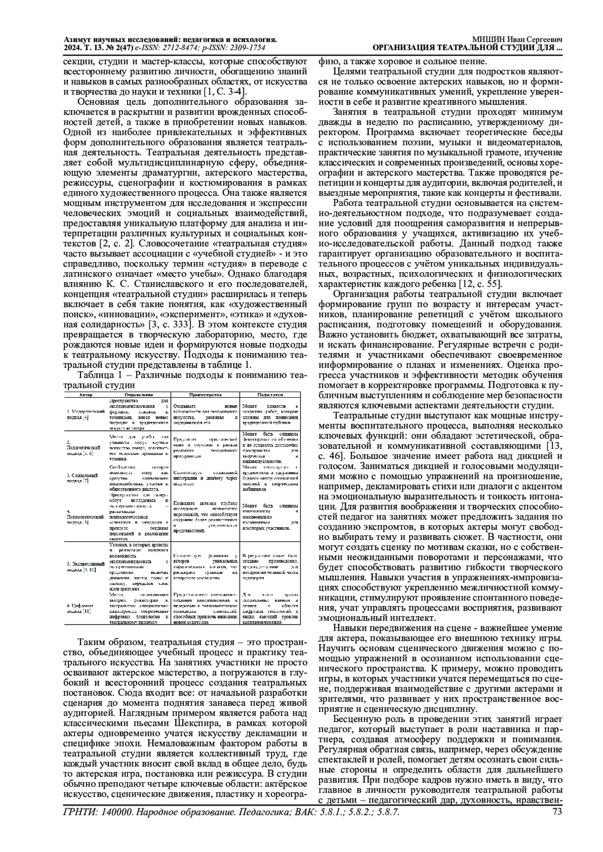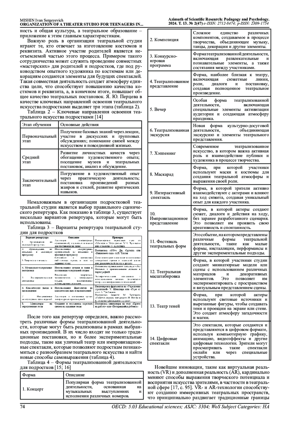 14. Перцева Я.Ю. Театральное искусство как средство эстетического воспитания детей и подростков // Научная палитра. 2023. № 1(39). EDN: BSNMLK