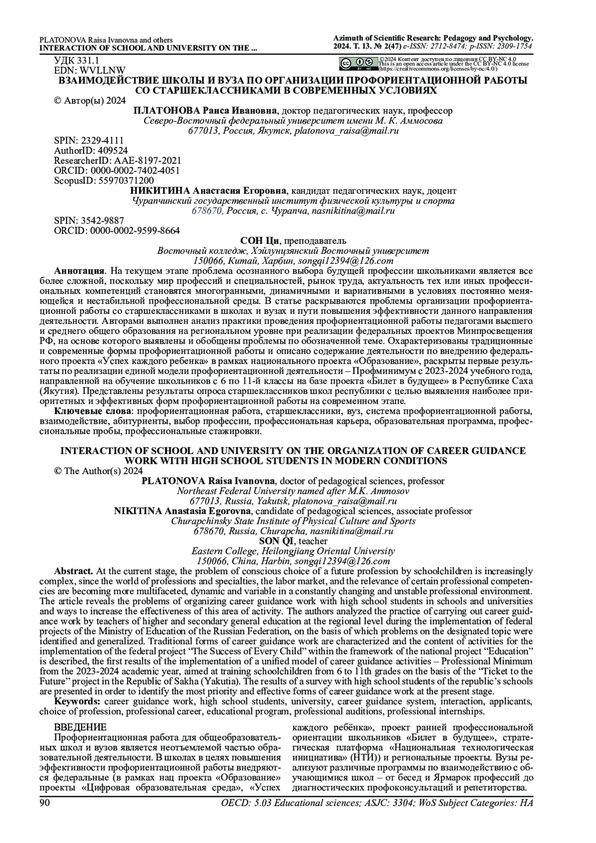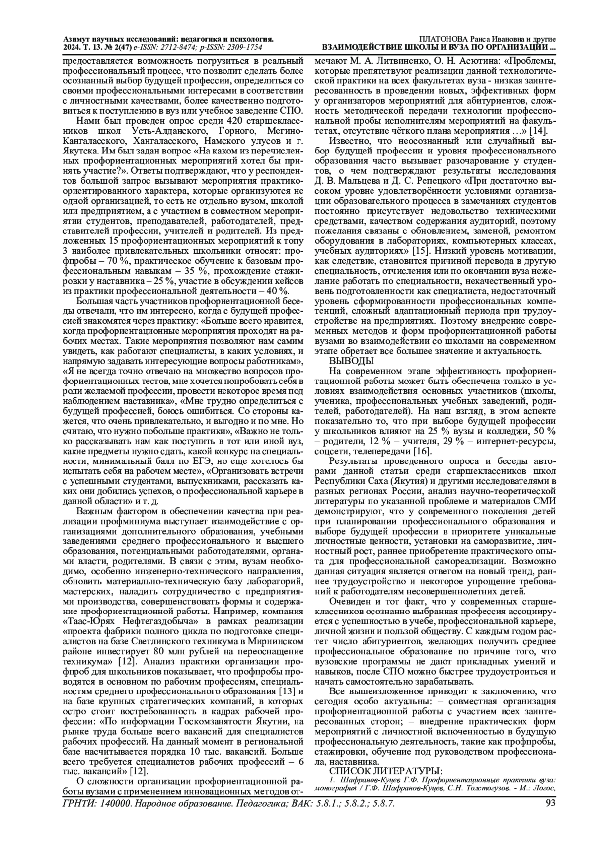 14. Литвиненко М.А. Асютина О.Н. Проведение профессиональных проб на факультетах вузов, направленных на формирование надпрофессиональных навыков абитуриентов // Организация работы с молодежью. 2020. № 2. URL: https://www.elibrary.ru/download/elibrary_45651436_15685098.pdf.