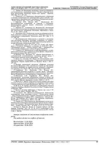 4. Ефричева О.Ю., Мельник И.В., Михайлюкова В.С. Исследовательская компетенция: её сущность и содержание. Международный научный журнал “Актуальные исследования”. №14(41), 2021.С.59-63. EDN: JMUROS