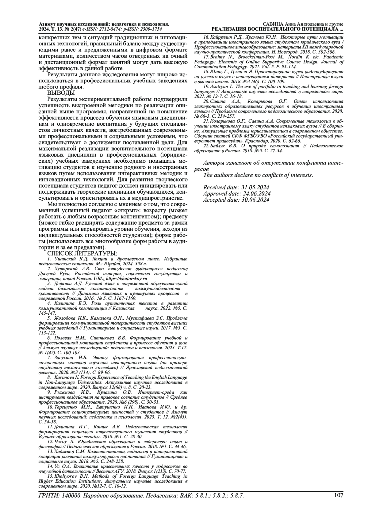 21. Коларькова О.Г., Савина А.А. Современные технологии в обучении иностранному языку студентов неязыковых вузов // В сборнике: Актуальные проблемы юрислингвистики в современном обществе. Сборник статей СКФ ФГБОУВО “Российский государственный университет правосудия”. Краснодар, 2020. С. 62-66. EDN: BMDMIF