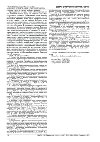 2. Исаев И. Ф. Профессионально-педагогическая культура преподавателя высшей школы как саморазвивающаяся система // Гаудеамус. 2002. № 1. С. 20-30. EDN: NVXQWJ