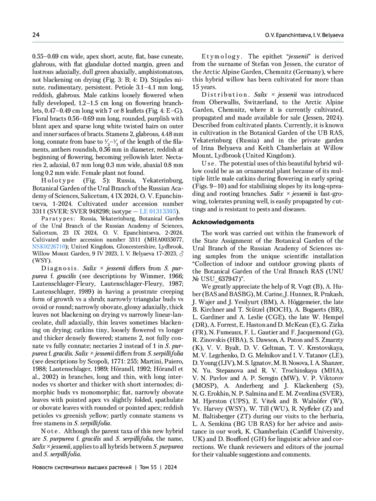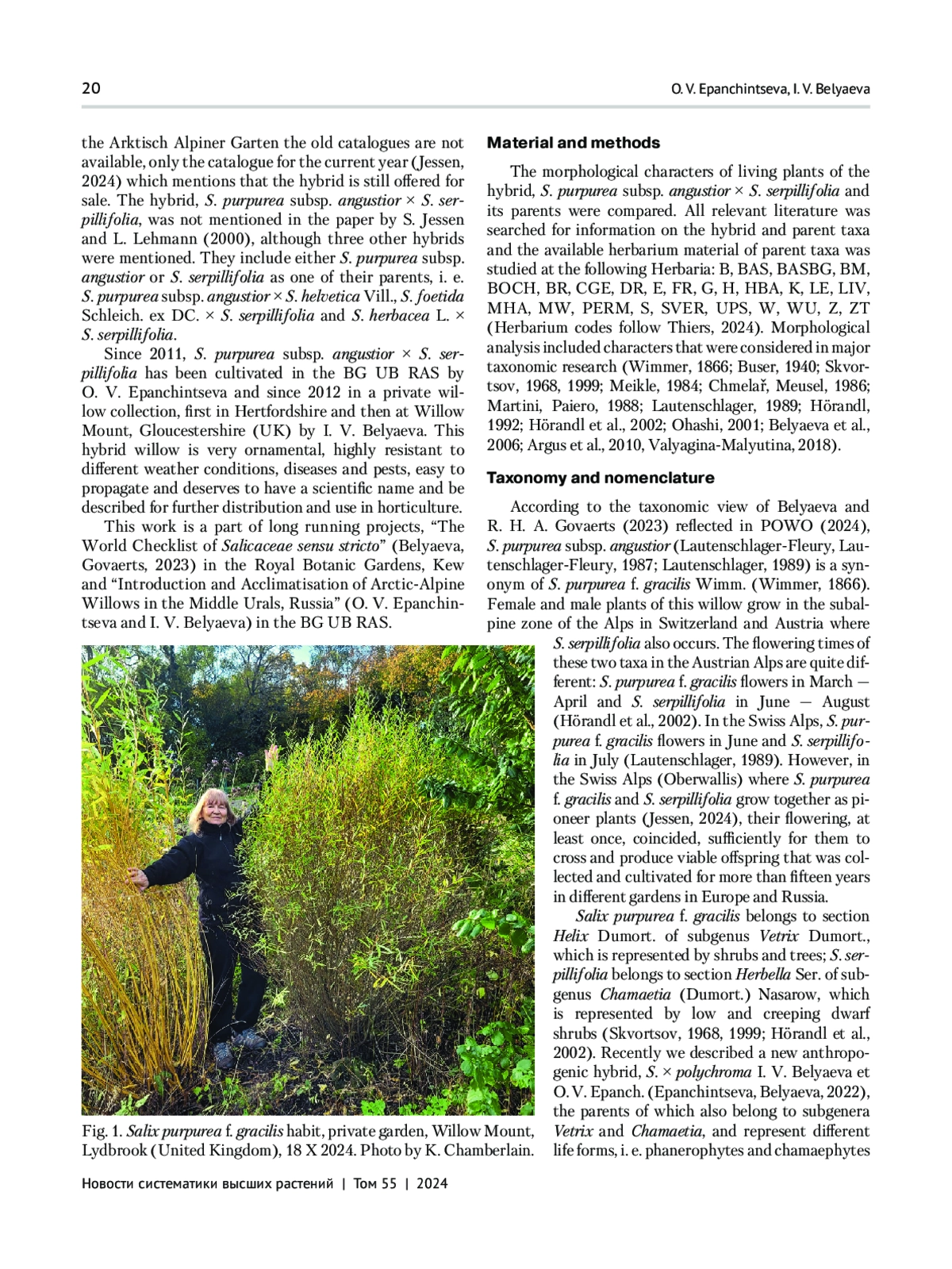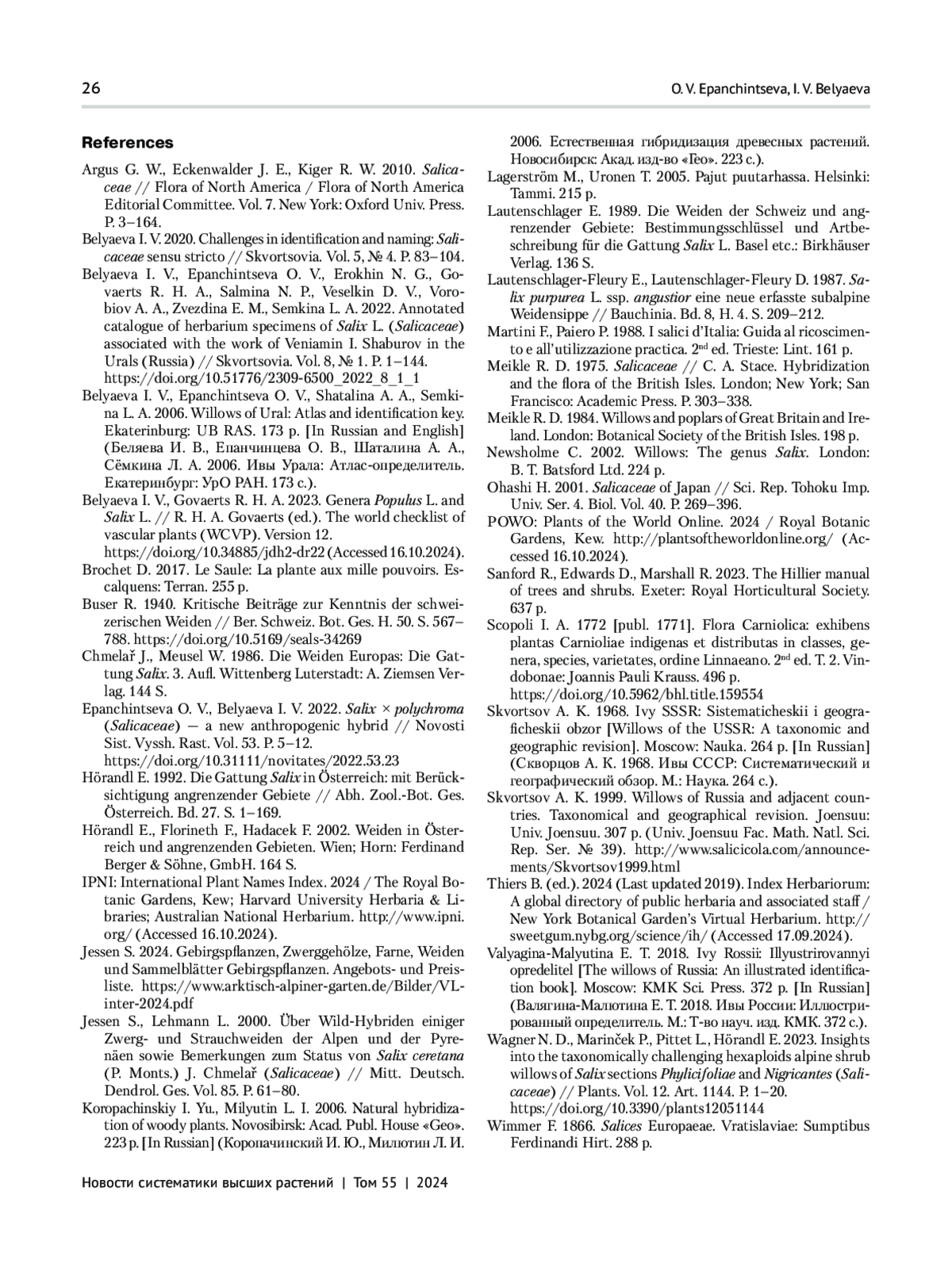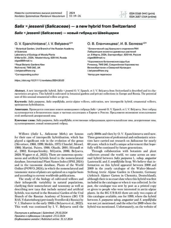 9. Epanchintseva O. V., Belyaeva I. V. 2022. Salix x polychroma (Salicaceae) - a new anthropogenic hybrid // Novosti Sist. Vyssh. Rast. Vol. 53. P. 5-12. DOI: 10.31111/novitates/2022.53.23