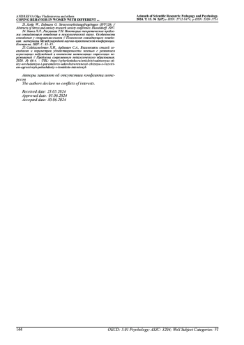 4. Arbağ E., Tokat M.A., Özöztürk S. Emotions, thoughts, and coping strategies of women with infertility problems on changes in treatment during Covid-19 pandemic: A qualitative study// Women’s Studies International Forum. - V. 98, 2023, P. 102735.