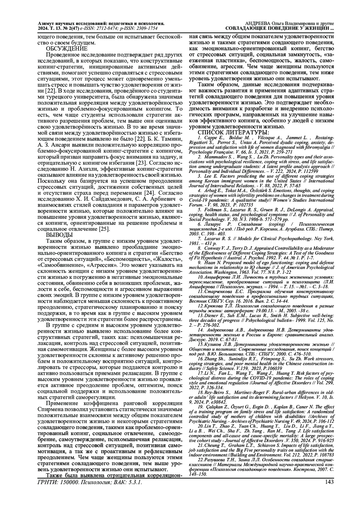 24. Заика Л.Л., Разуваева Т.Н. Некоторые теоретические проблемы совладающего поведения в психологической науке. Особенности совладания у старшеклассников // Психология совладающего поведения: материалы Международной научно-практической конференции. Кострома, 2007. С. 33-35.