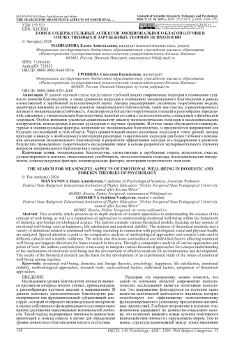 В данной научной статье представлен глубокий анализ современных подходов к пониманию сущности понятия благополучия, а также сравнение подходов к пониманию эмоционального благополучия в рамках отечественной и зарубежной психологической науки. Авторы рассматривают различные теоретические модели, акцентируя внимание на ключевых аспектах эмоционального благополучия, таких как счастье, удовлетворенность жизнью и эмоциональная устойчивость. Анализируется богатство теоретических позиций и разнообразие определений, связанных с эмоциональным благополучием, включая его связь с психологическим, социальным и физическим здоровьем. Особое внимание уделяется сравнительному анализу методологических подходов и исследовательских инструментов, используемых в разных культурных и научных традициях. В статье также обсуждаются социокультурные и индивидуальные факторы, влияющие на эмоциональное благополучие, и предлагаются направления для будущих исследований в этой области. Через сравнительный анализ различных подходов и точек зрений, авторы приходят к выводу о необходимости интеграции различных теоретических подходов для более глубокого понимания механизмов эмоционального благополучия и разработки эффективных методик его поддержания и развития. Результаты проведенного теоретического исследования лежат в основе разработки экспериментального изучения вопросов эмоционального благополучия у педагогов.