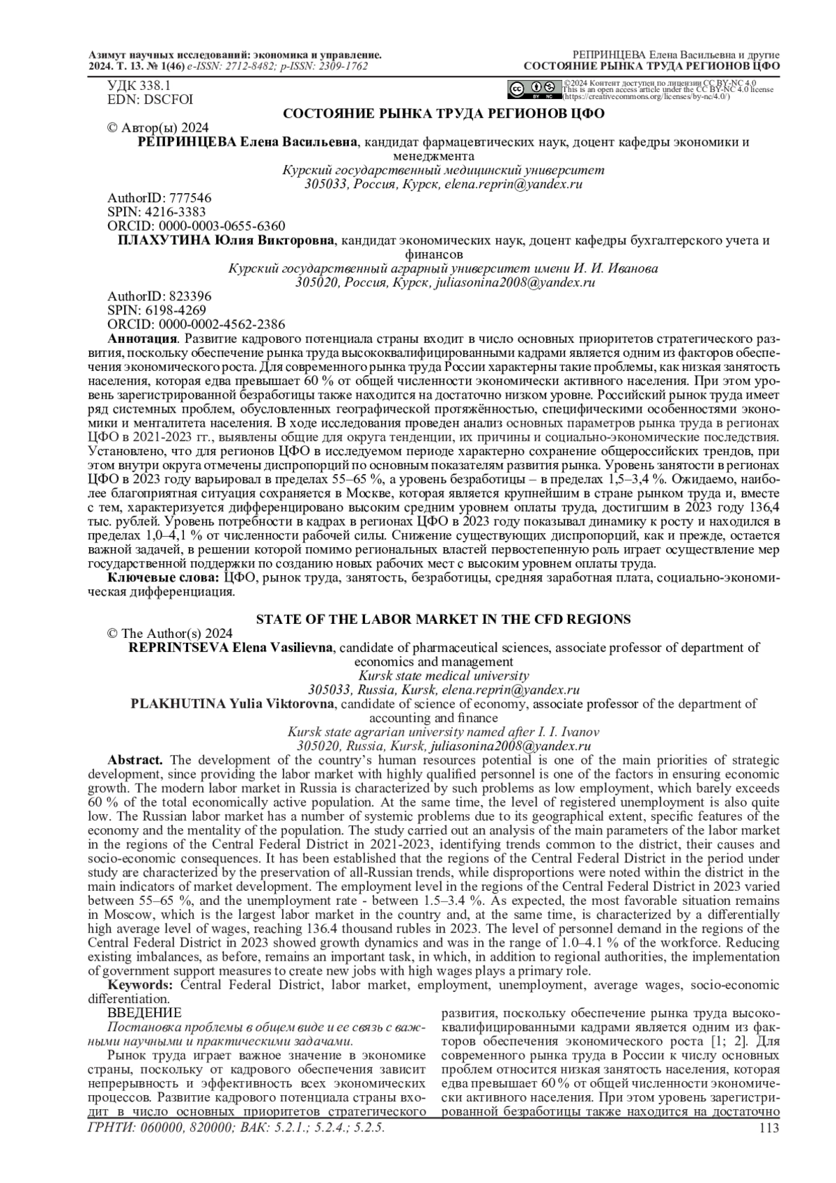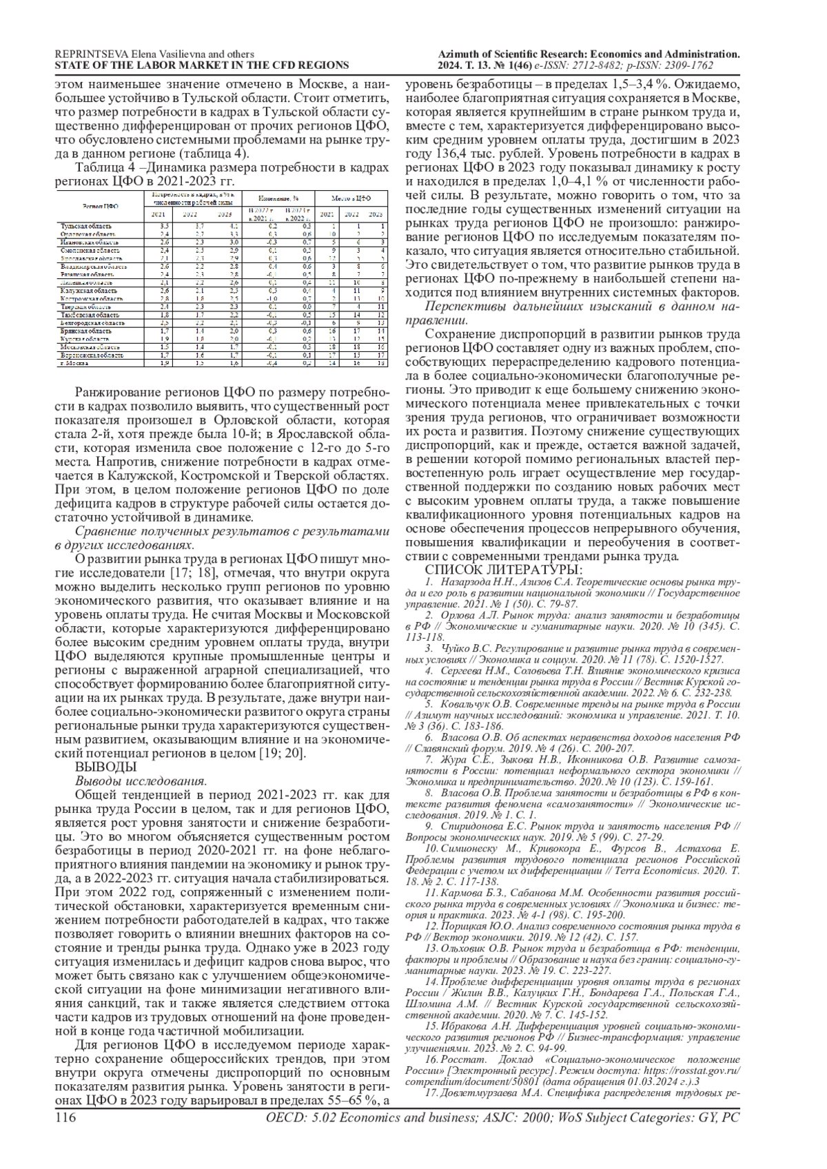 17. Довлетмурзаева М.А. Специфика распределения трудовых ресурсов в регионах Российской Федерации // Kant. 2023. № 4 (49). С. 32-40. EDN: CVPSNO