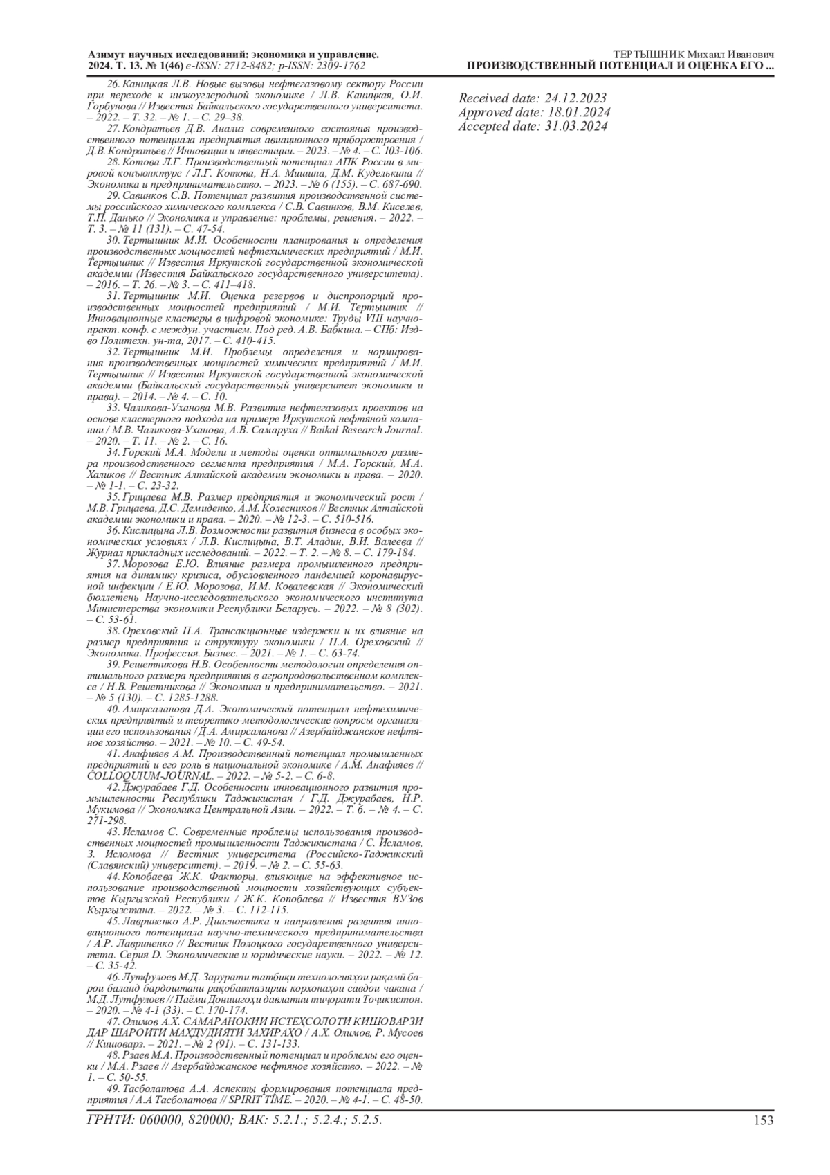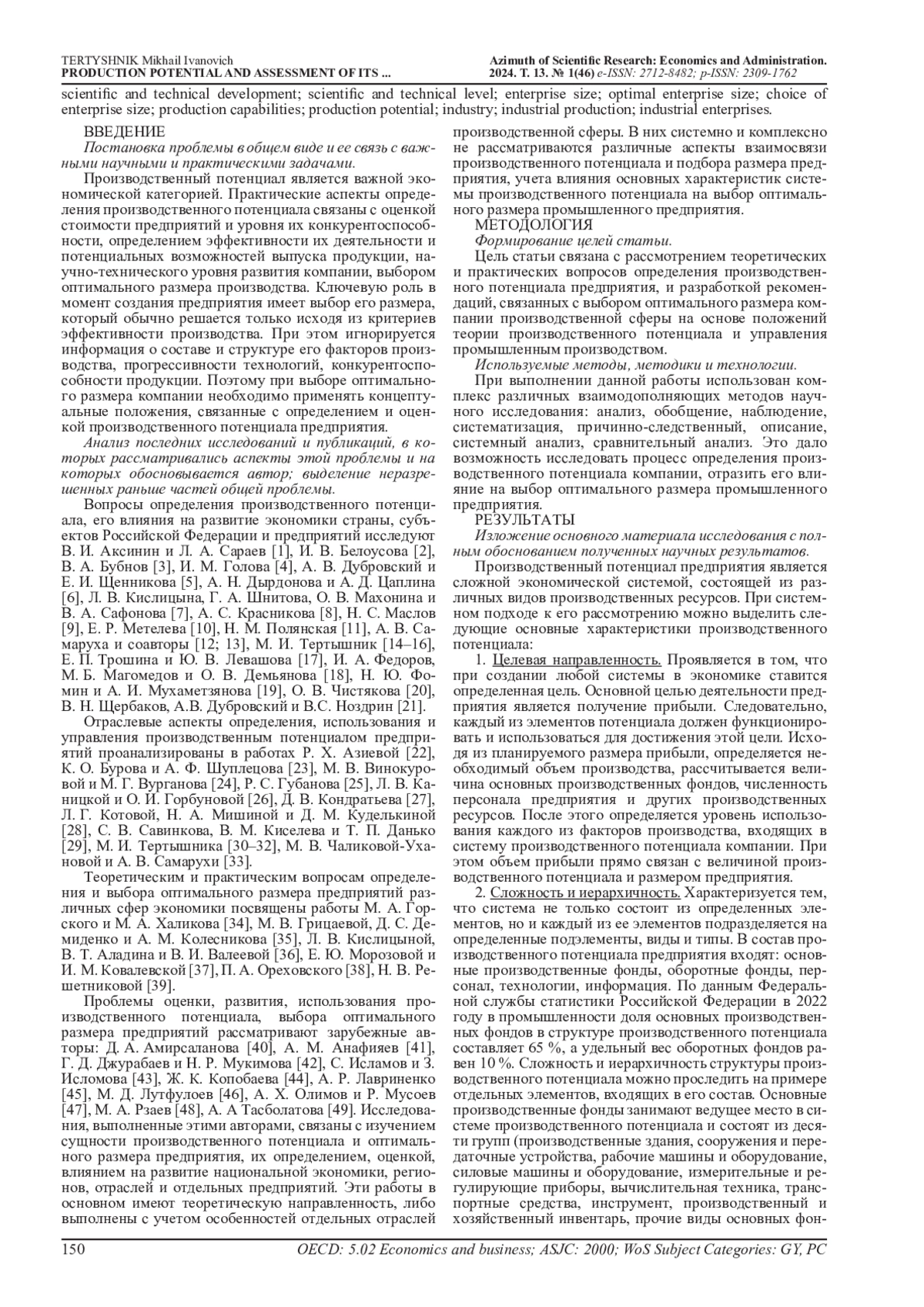 32. Тертышник М.И. Проблемы определения и нормирования производственных мощностей химических предприятий / М.И. Тертышник // Известия Иркутской государственной экономической академии (Байкальский государственный университет экономики и права). - 2014. - № 4. - С. 10. EDN: SIUDGJ