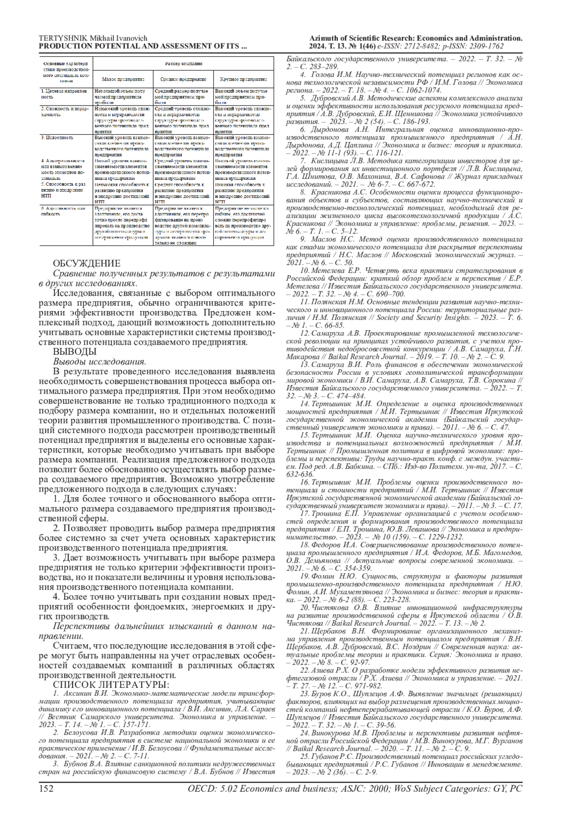 34. Горский М.А. Модели и методы оценки оптимального размера производственного сегмента предприятия / М.А. Горский, М.А. Халиков // Вестник Алтайской академии экономики и права. - 2020. - № 1-1. - С. 23-32. EDN: WZAFYM