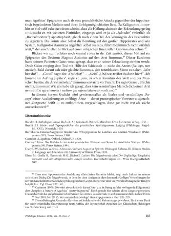 8. Ehrhardt, P. Satirische Epigramme auf Ärzte. Eine medizinhistorische Studie auf der Grundlage des XI. Buches der AP. Diss. med. Erlangen, Friedrich-Alexander-Universität, 1974.