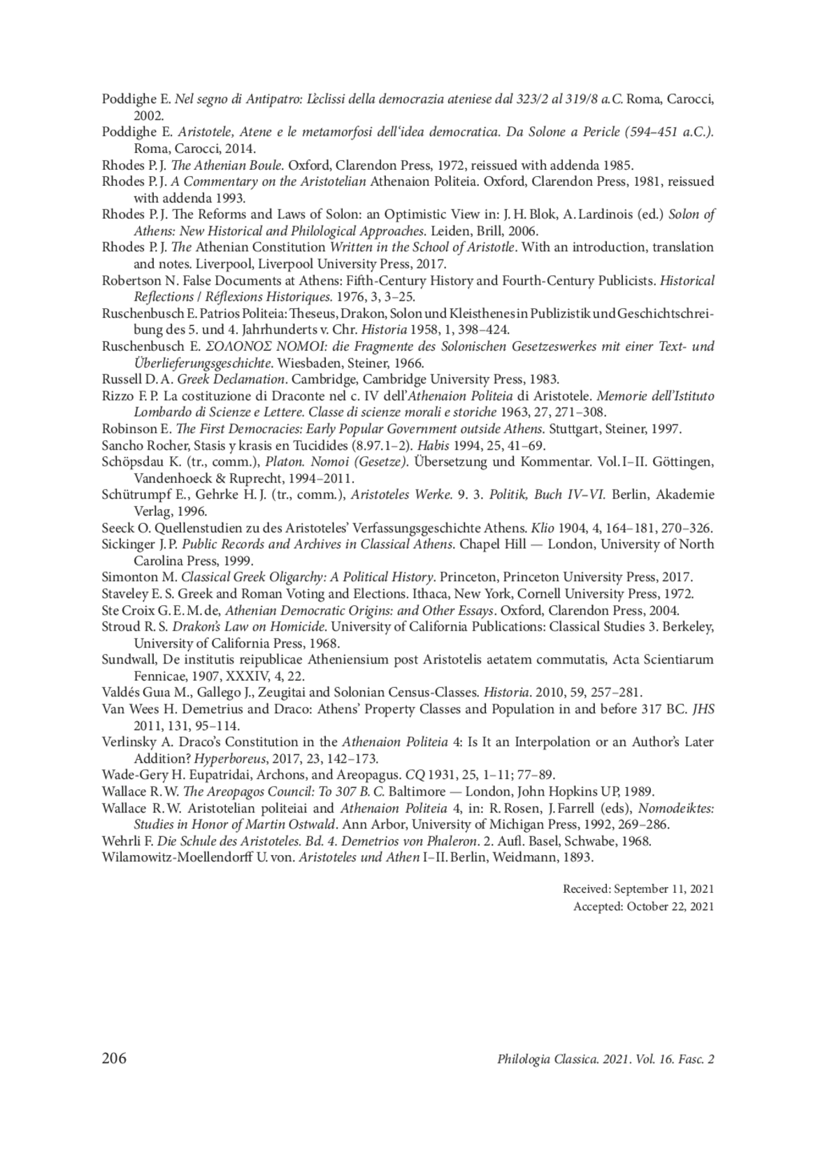 64. Wallace R. W. Aristotelian politeiai and Athenaion Politeia 4, in: R. Rosen, J. Farrell (eds), Nomodeiktes: Studies in Honor of Martin Ostwald. Ann Arbor, University of Michigan Press, 1992, 269-286.