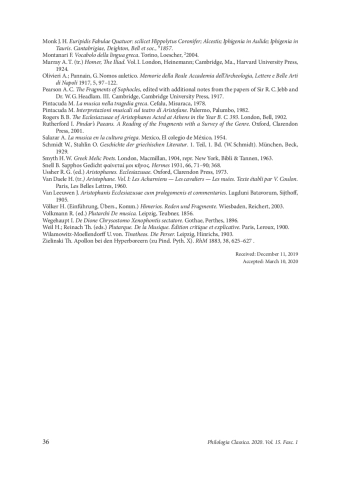 11. Brussich G. F. Un auleta del IV sec. a.C.: Timoteo di Tebe, in: B. Gentili, F. Perusino (eds) Mousike: metrica ritmica e musica greca in memoria di Giovanni Comotti. Studi di metrica classica 11. Pisa, Rome, Instituti Editoriali e Poligrafici Internazionali, 1995.