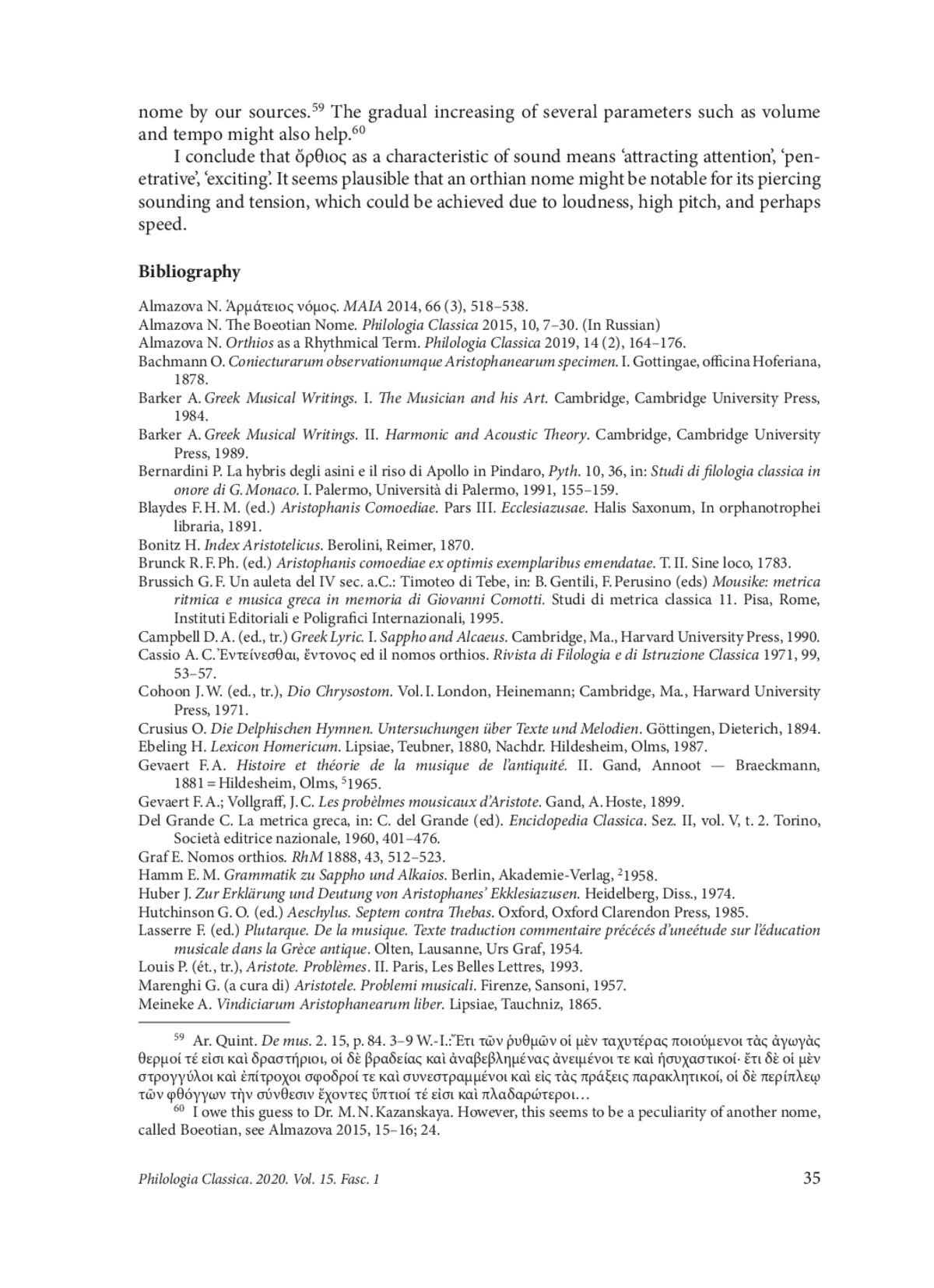 3. Almazova N. Orthios as a Rhythmical Term. Philologia Classica 2019, 14 (2), 164-176. EDN: DNNXNV