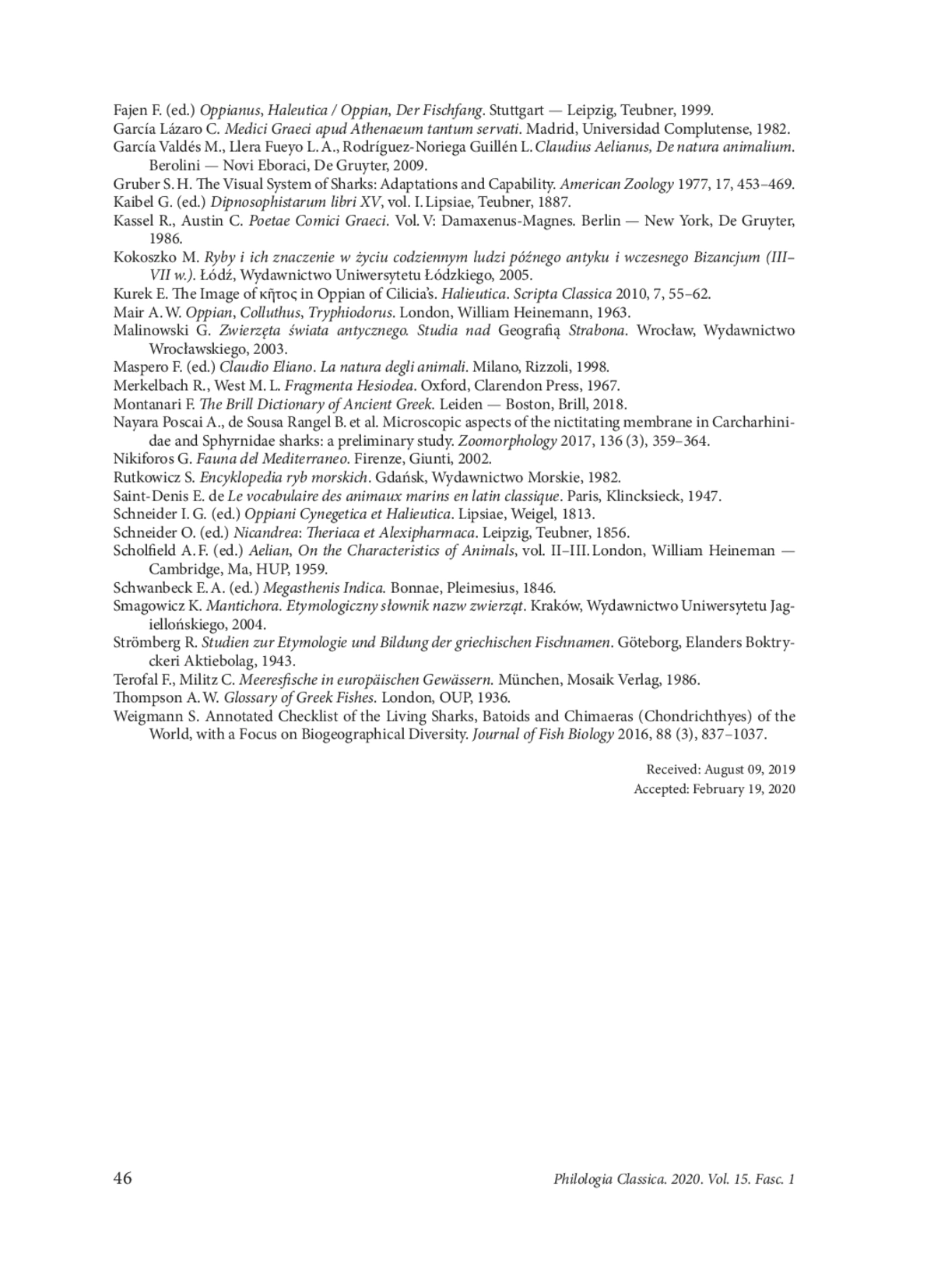 26. Scholfield A. F. (ed.) Aelian, On the Characteristics of Animals, vol. II-III. London, William Heineman - Cambridge, Ma, HUP, 1959.