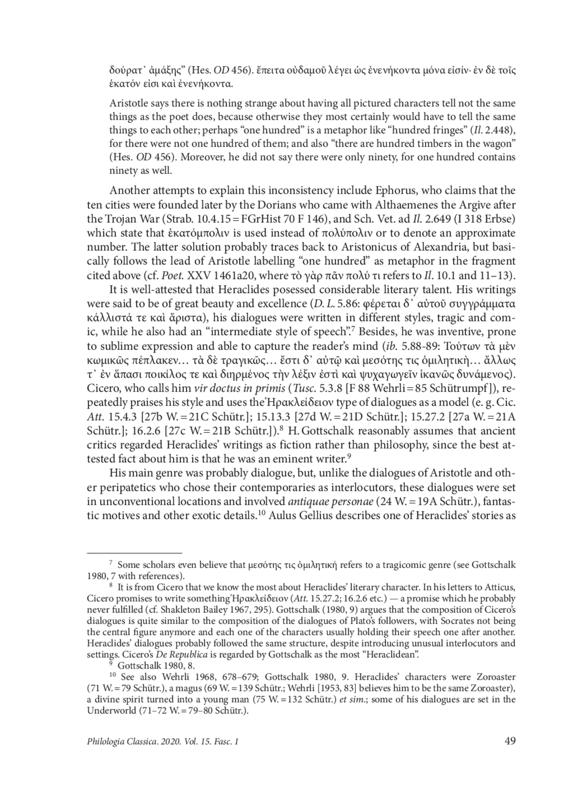 Heraclides of Pontus was once called one of the most enigmatic figures in the history of Greek philosophy.1 He was known as a prolific author; his treatises were read up until the late antiquity. Yet, none of his works survived, his biography remains fragmentary and his teachings cannot be easily reconstructed, the testimonies being mostly vague and sometimes conflicting. Diogenes Laertius (5. 86) mentions a huge amount of Heraclides’ writings in different areas of knowledge, comprising geometry and physics, dialectics, ethics, grammar, music and literary criticism, history and rhetorics. The catalogue has been criticized for a number of reasons,2 but Heraclides’ scientific versatility remains beyond doubt.