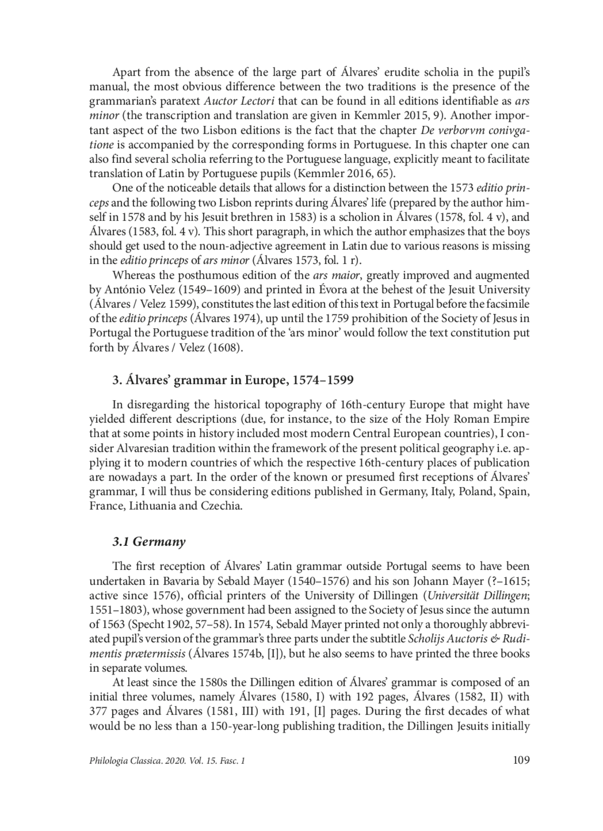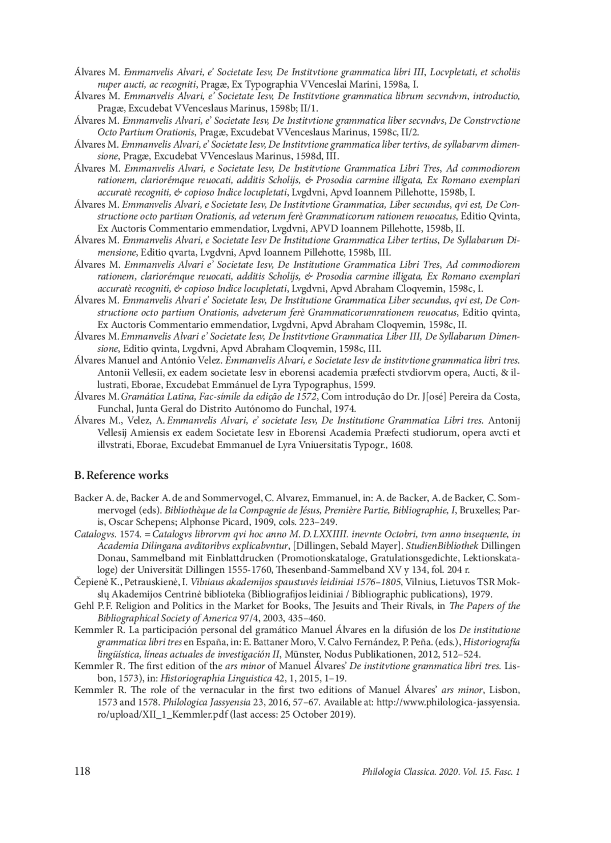 38. Kemmler R. The first edition of the ars minor of Manuel Álvares’ De institvtione grammatica libri tres. Lisbon, 1573), in: Historiographia Linguistica 42, 1, 2015, 1-19.