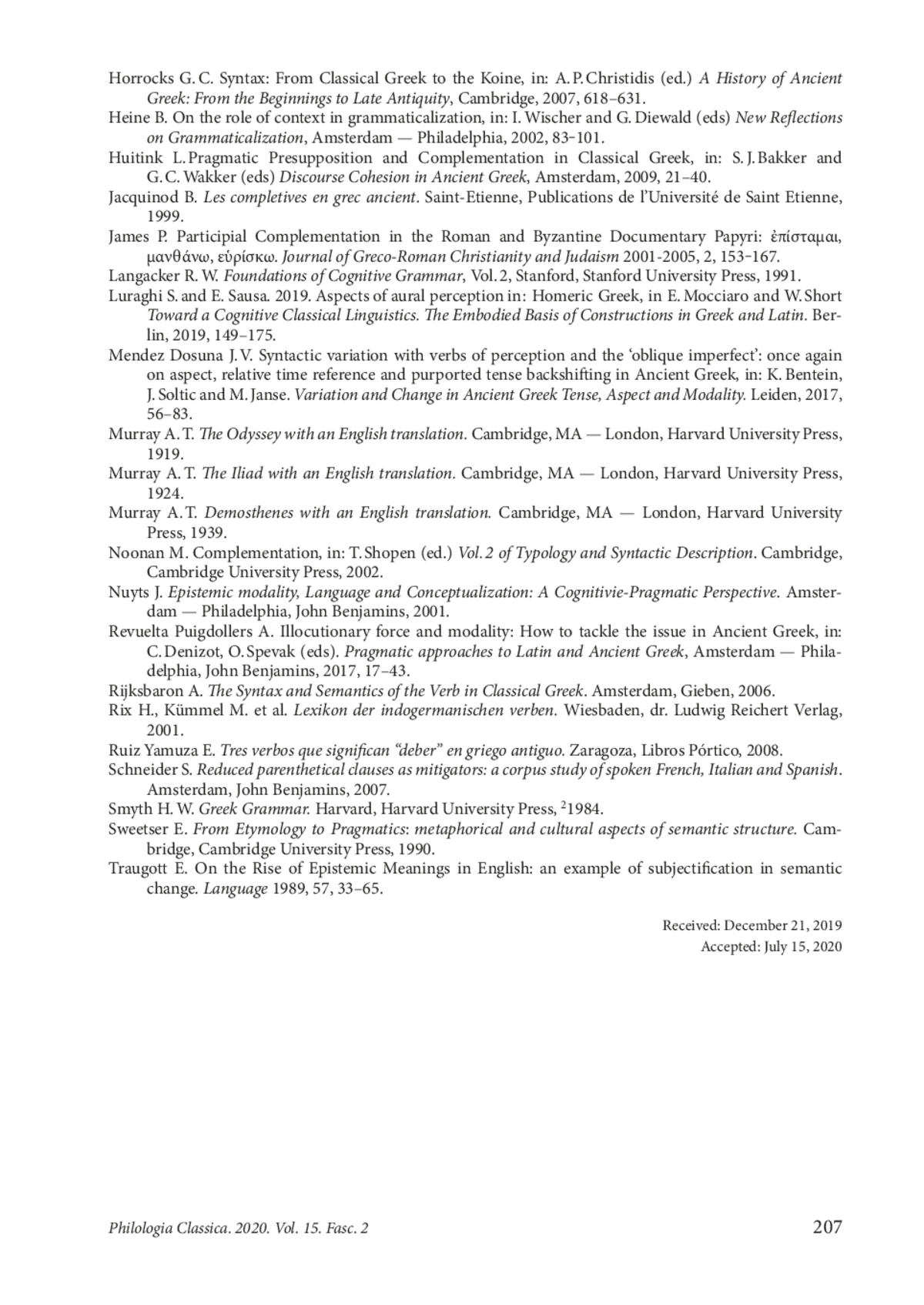 26. Jacquinod B. Les completives en grec ancient. Saint-Etienne, Publications de l’Université de Saint Etienne, 1999.