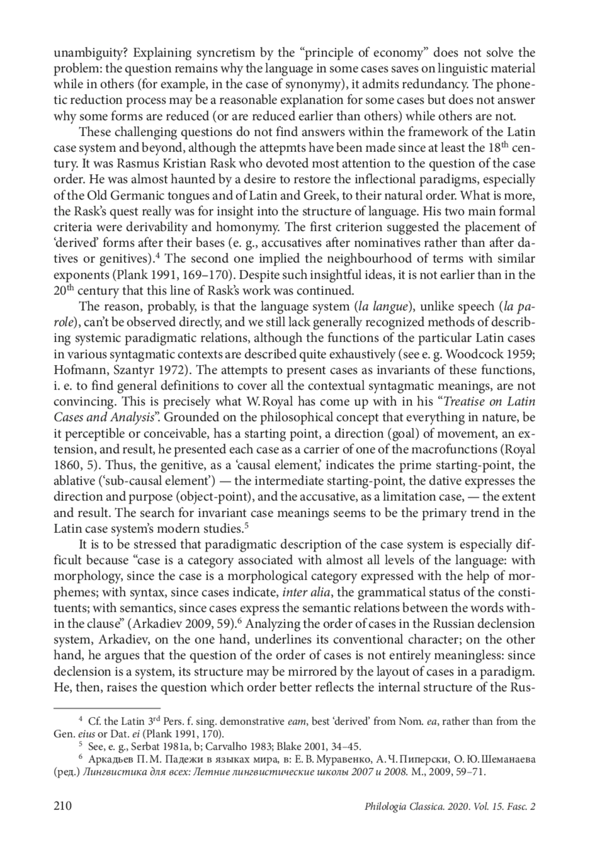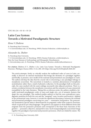48. Zheltov A. Ju., Zheltova E. V. Why the language saves on the case forms, or about the order of cases in Latin. Indoeuropean Linguistics and Classical Philology 2020, 24, 1040-1069. (In Russian).