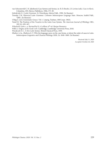 44. Vairel H. The Position of the Vocative in the Latin Case System. The American Journal of Philology 1981, 102 (4), 438-447.