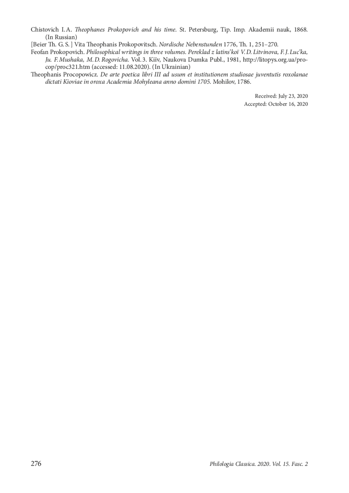 13. Феофан Прокопович. Фiлософськi твори в трьох томах. Переклад з латинської В. Д. Литвинова, Ф. Й. Луцька, Ю. Ф. Мушака, М. Д. Роговича. Т. 3. Київ, Наукова Думка. 1981, http://litopys.org.ua/procop/proc321.htm (дата обращения: 11.08.2020).