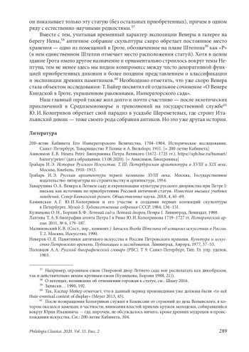 13. Шаму М. Античная Венера Петра Великого. Петровские памятники России и Европы. Санкт-Петербург, Европейский дом, 2016, 624-634.