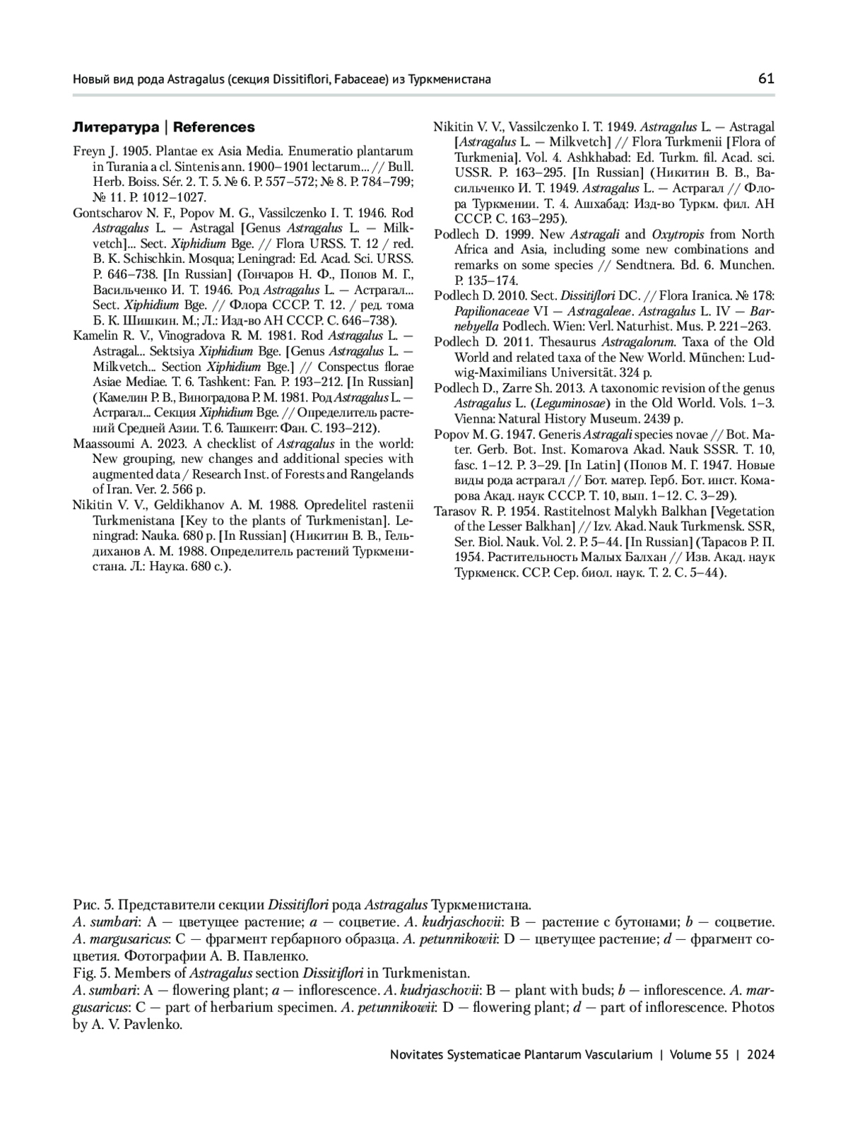 7. Nikitin V. V., Vassilczenko I. T. 1949. Astragalus L. - Astragal [Astragalus L. - Milkvetch] // Flora Turkmenii [Flora of Turkmenia]. Vol. 4. Ashkhabad: Ed. Turkm. fil. Acad. sci. USSR. P 163-295.