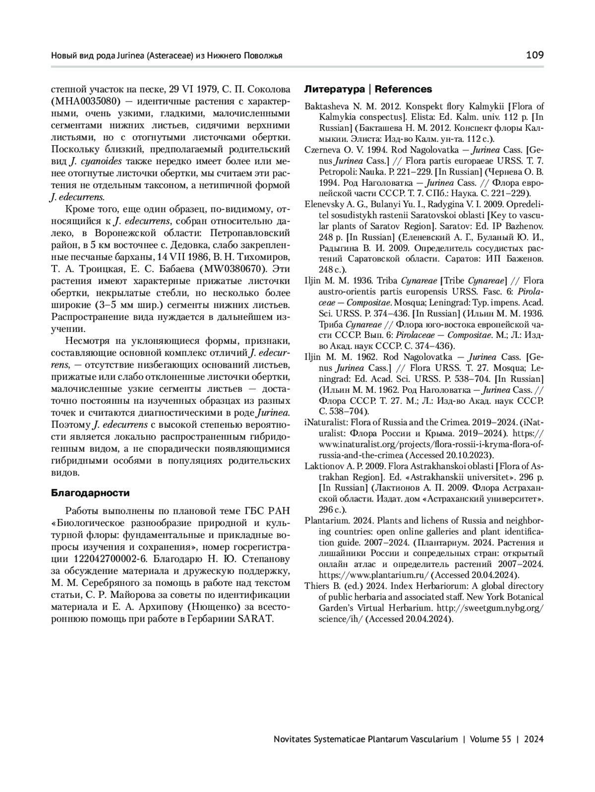 9. Thiers B. (ed.) 2024. Index Herbariorum: A global directory of public herbaria and associated staff. New York Botanical Garden’s Virtual Herbarium. http://sweetgum.nybg.org/science/ih/ (Accessed 20.04.2024).