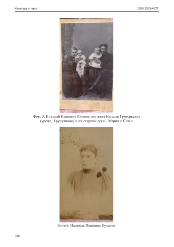 8. Архивная справка о рождении детей у Николая Павловича и Натальи Григорьевны Кузминых // ГАСО. Ф. 48. Оп. 4. Д. 856. Церковь № 40. 1905 г. Д. 864. 1907 г. Д. 887. 1910 г. Д. 881. 1911 г. Д. 885. 1912 г. Д. 889. 1913 г.