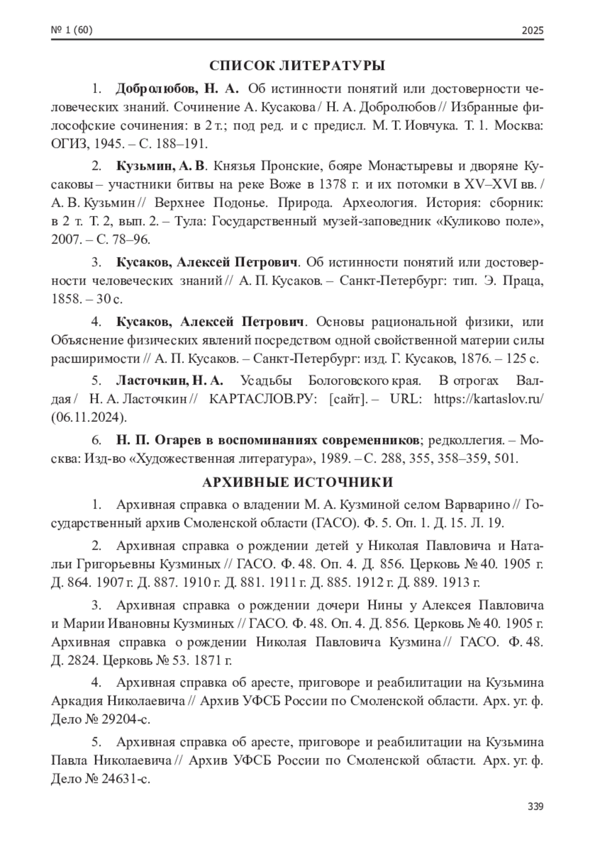 2. Кузьмин, А. В. Князья Пронские, бояре Монастыревы и дворяне Кусаковы - участники битвы на реке Воже в 1378 г. и их потомки в XV-XVI вв. / А. В. Кузьмин // Верхнее Подонье. Природа. Археология. История: сборник: в 2 т. Т. 2, вып. 2. - Тула: Государственный музей-заповедник “Куликово поле”, 2007. - С. 78-96. EDN: XFYMVT