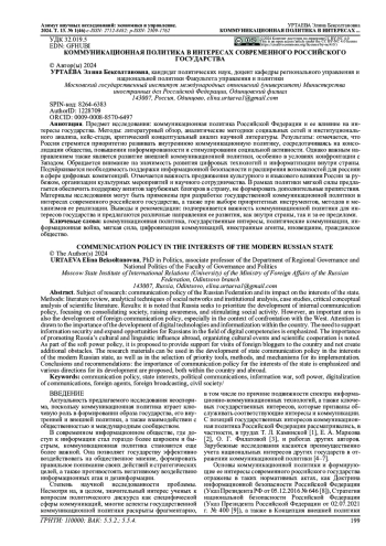 Актуальность предлагаемого исследования неоспорима, поскольку коммуникационная политика играет ключевую роль в формировании образа государства, его внутренней и внешней политики, а также взаимодействии с общественностью и международным сообществом.