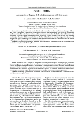 14. Мороз Е. Л., Гмошинский В. И., Щепин О. Н., Новожилов Ю. К. 2024. Систематика и филогения миксомицетов: вчера, сегодня и завтра. Доклады биологических наук 519: 356-369. DOI: 10.1134/S0012496624701242