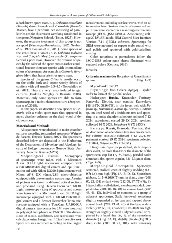 Cribraria Pers. is one of the largest myxomycete genera, encompassing at least 47 species (Lado, 2005–2025). It is readily distinguished from other genera by several characters, including the stalked sporocarps, with a partially evanescent membranous peridium that remains as a network of threads (or as ribs) and as a calyculus at the base of the sporotheca; the calyculus may be very reduced or absent. Some species may be almost sessile and may form pseudoaethaloid forms, like Cribraria argillacea (Pers. ex J. F. Gmel.) Pers. or C. cribrarioides (Emoto) Hatano. Dictydine granules present on the calyculus, ribs, and nodes of the peridial net and sometimes on threads, in the stalk or on the spores. The stalk is usually translucent in transmitted light and sometimes filed with granules. The capillitium absent (Poulain et al., 2011).