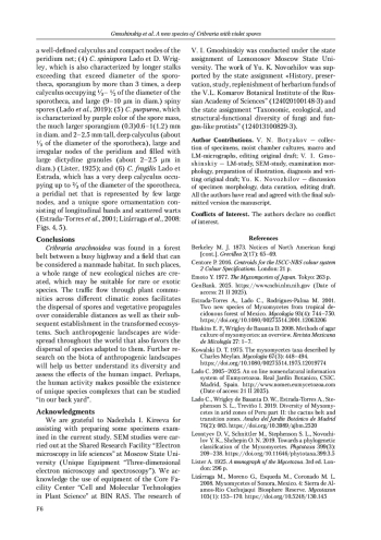 5. Estrada-Torres A., Lado C., Rodrigues-Palma M. 2001. Two new species of Myxomycetes from tropical decidouous forest of Mexico. Mycologia 93(4): 744-750. DOI: 10.1080/00275514.2001.12063206
