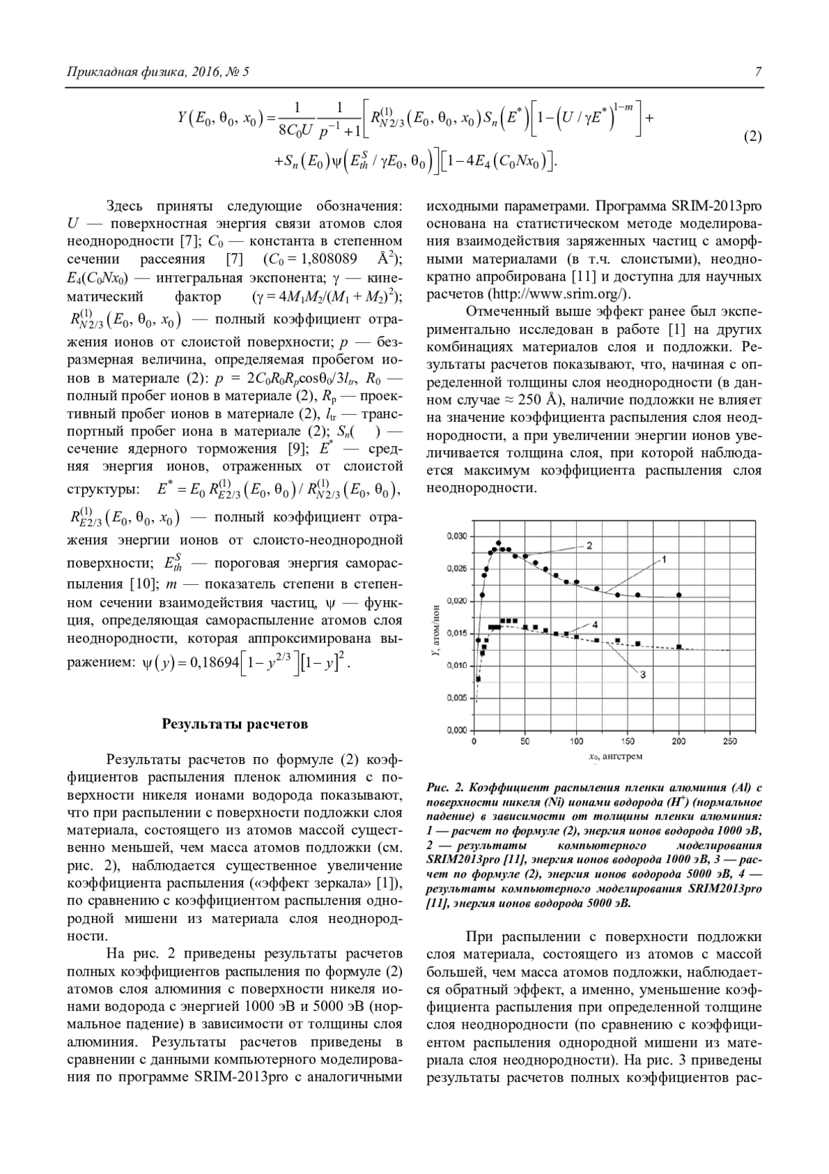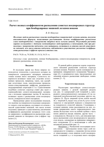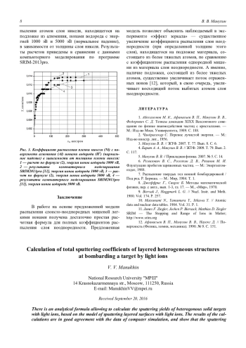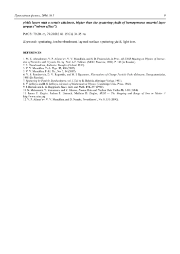 Манухин В. В. Расчет полных коэффициентов распыления слоистых неоднородных структур при бомбардировке мишеней легкими ионами 5