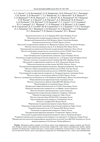 73. Шевченко В. М., Афонина О. М., Андросова В. И., Арсланов С. Н., Беляков Е. А., Чернова А. М., Александер И. В., Давыдов Е. А., Дорошина Г. Я., Ерохина О. В. ил. 2022. Новые криптографические записи. 10. Новости систематики низших растений 56(2): 477-517. DOI: 10.31111 / nsnr/2022.56.2.477